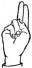 На ћирилици написано ВУКОСАВ ДОБРИЧИЋ састоји се из 15 слова [?]. Исписано ћириличном једноручном азбуком за глувонеме: